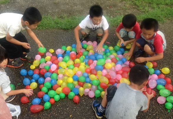 皆のチームワークにより、あっという間に200個位の水風船が出来ました!