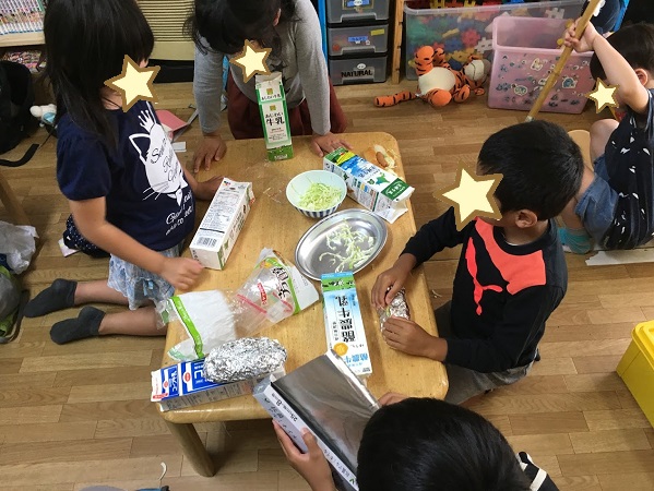 いっぱい遊んで、自分たちが用意したカートンドッグ食べて、