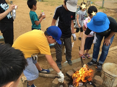 夢パークの方針は、大人の手を借りず子供たち自身で火起こしをする!