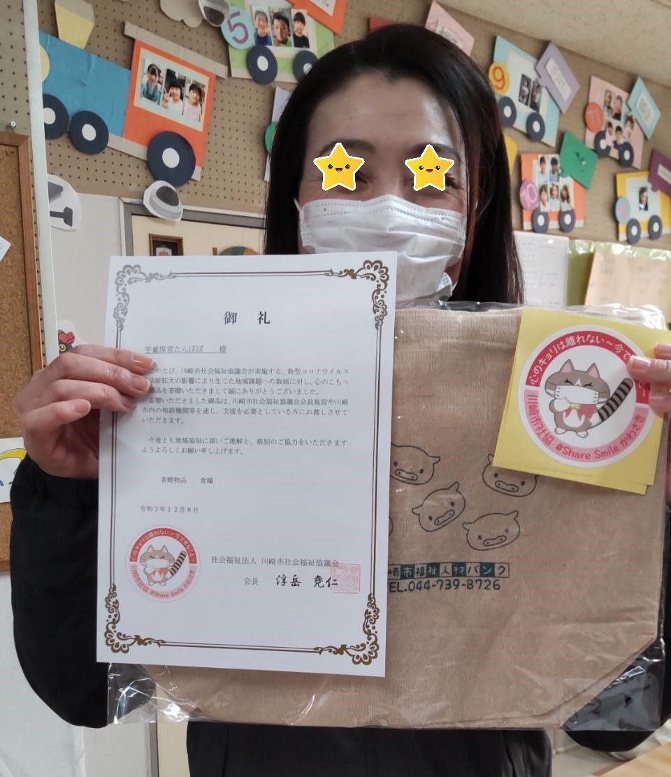ご寄付頂いた食品は、いつも保護者が溝の口まで持ち込んでいるのですが、たんぽぽの近くにも持ち込み可能な施設がある、と川崎市社会福祉協議会の方から千年やまゆり保育園を紹介いただきました。