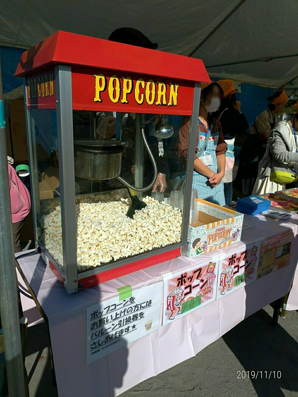 おいしいポップコーンを買うと、ピエロさんから風船を1つプレゼント♪