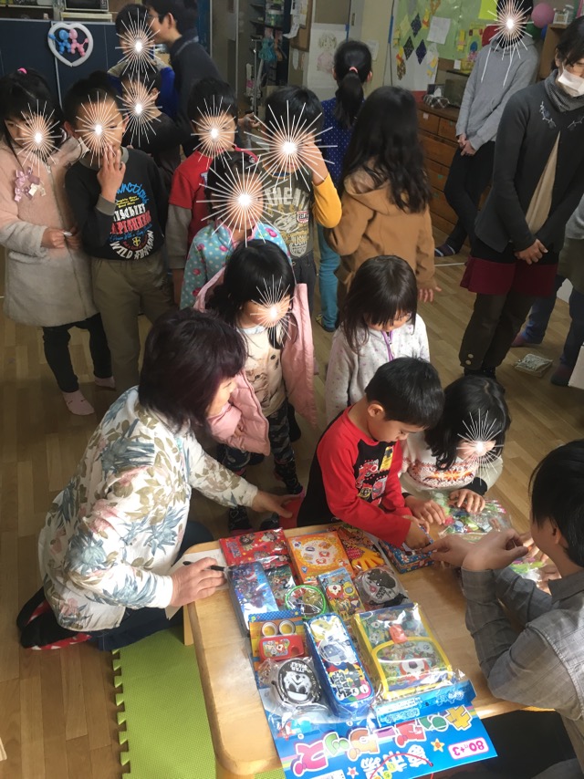 女の子はシートを敷き駄菓子を広げ、即席女子会の開催です