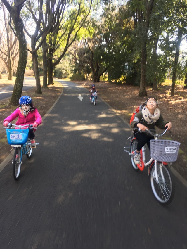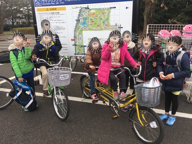 レンタルは各自自由なのですが、来園した事ある子の「広いから自転車で移動が便利だよ!」の一言に右へ習えの如く皆で借りました