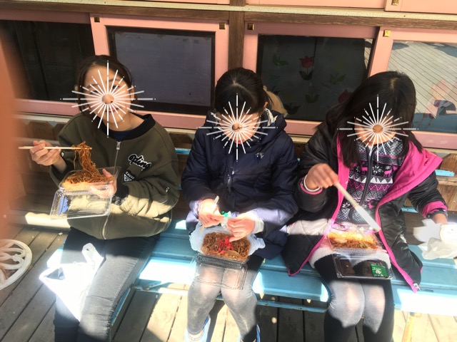 青空の下皆で食べるご飯は格別です