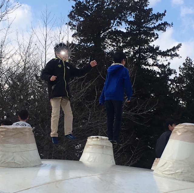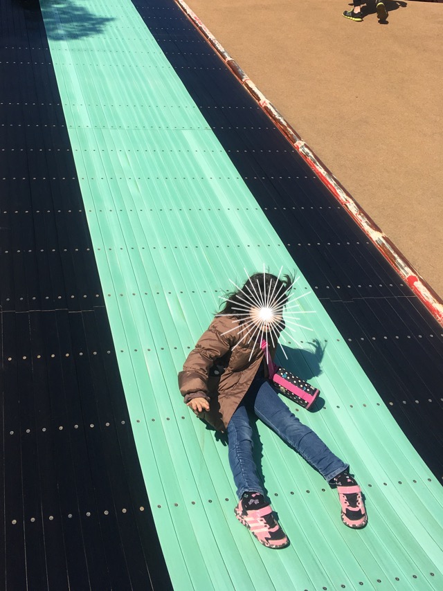 ここでは、大きなトランポリンの上で鬼ごっこしたり、ジャングルジムや、長ーい、長ーい滑り台、ウォータースライダーの様に先の見えない滑り台などのアスレチックで遊びました