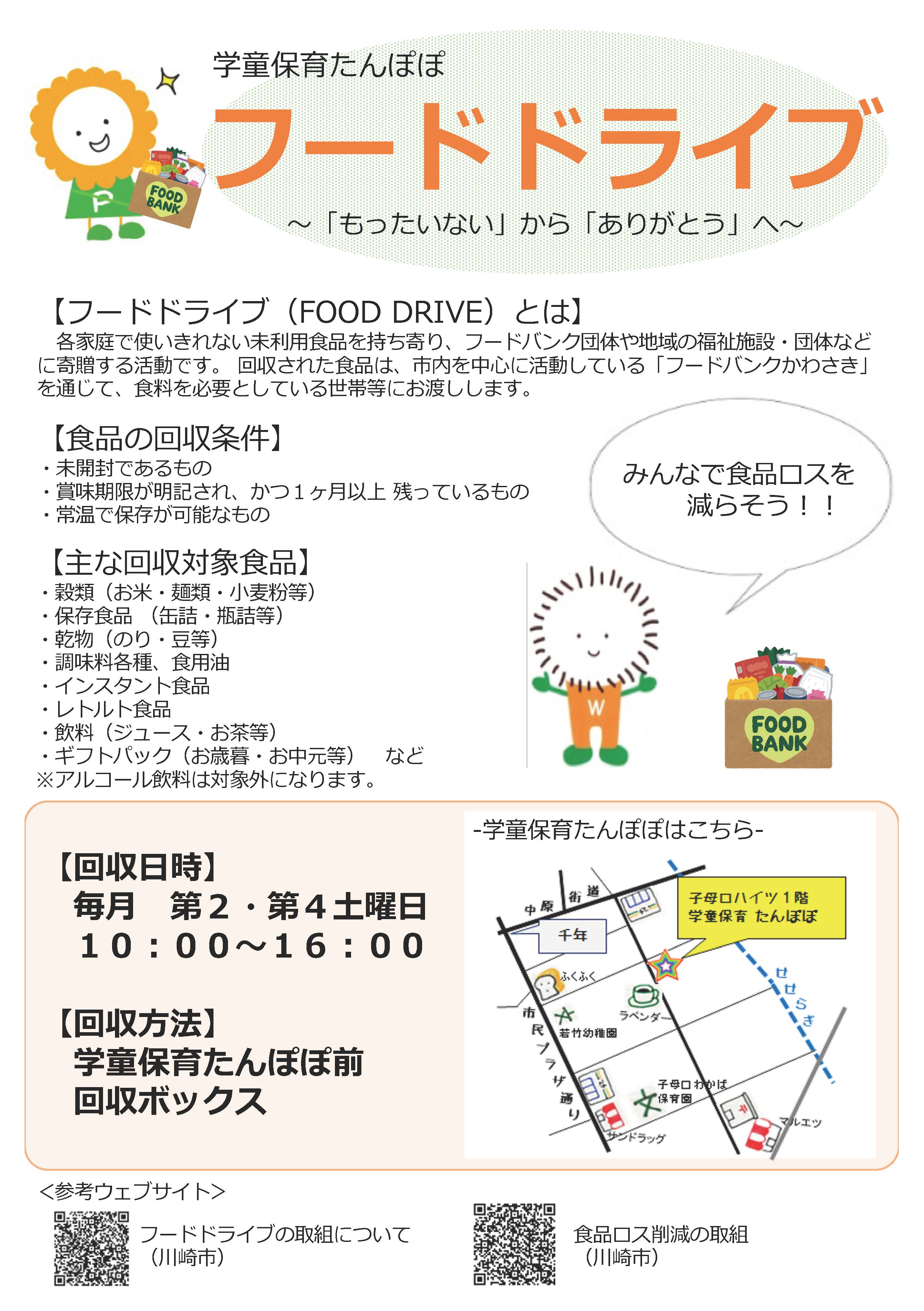 「フードバンクかわさき」へ届ける活動「フードドライブ」を始めます。