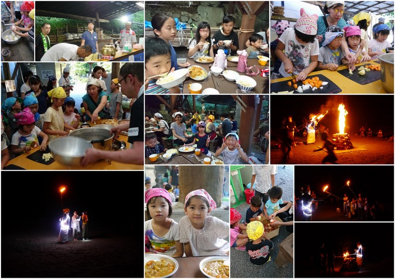 大人が出し物(ダンス)を披露したりemoji。夜空に舞い上がる火の子を見ながら最後は