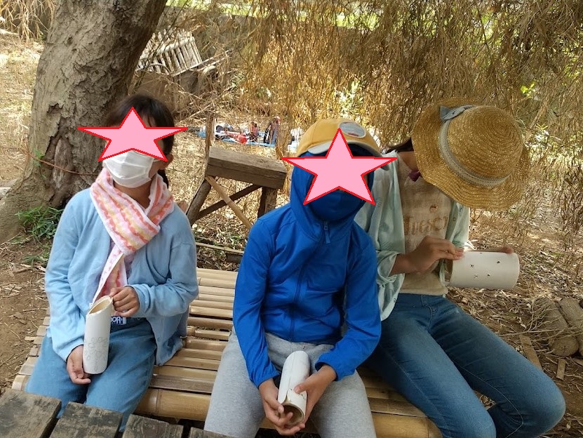 自分が思う長さにさらに調整。中には、初めてのこぎりを使う子もいます。