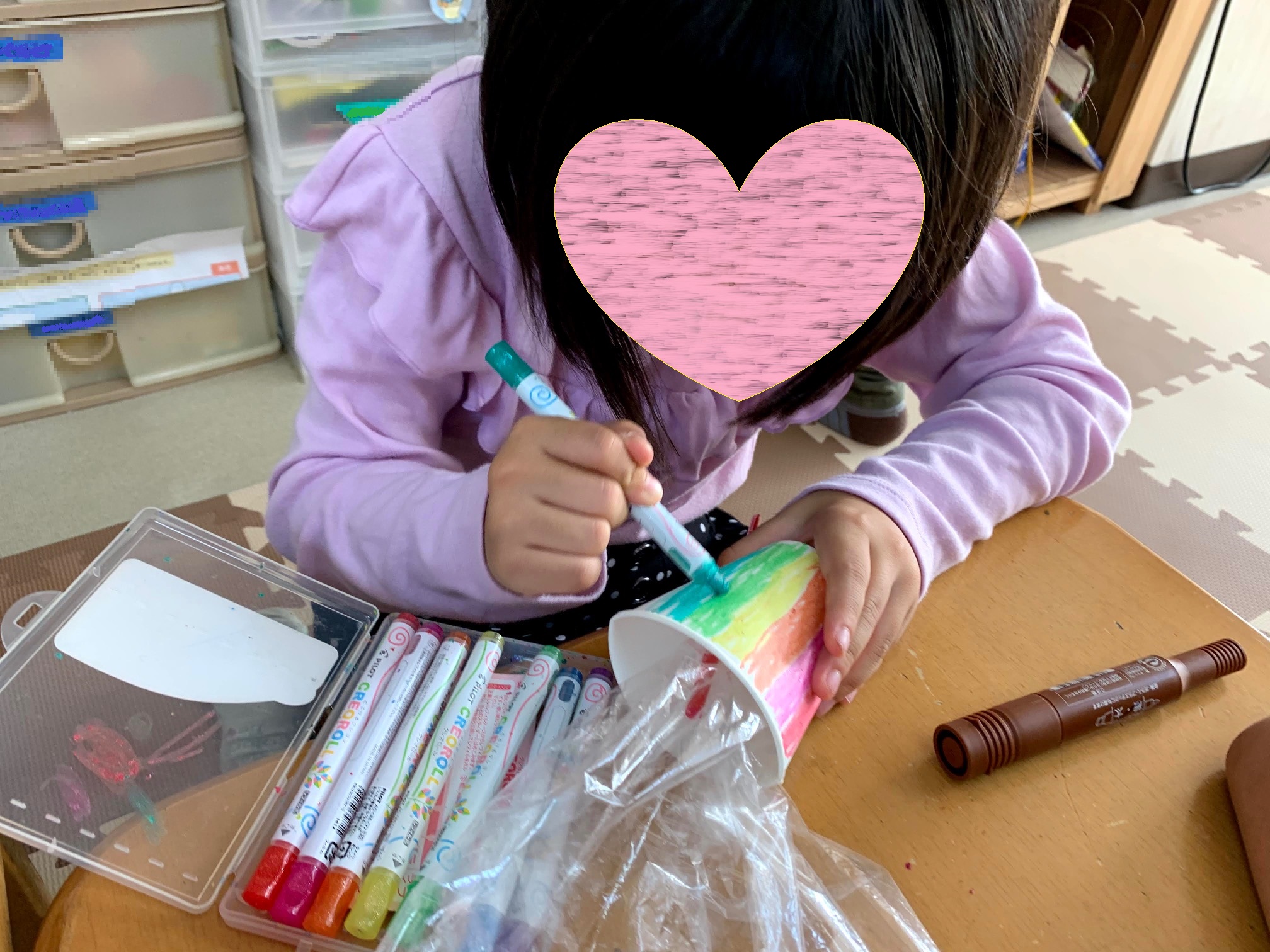 貼ったり工夫して、オリジナルの紙コップスターを作りました。