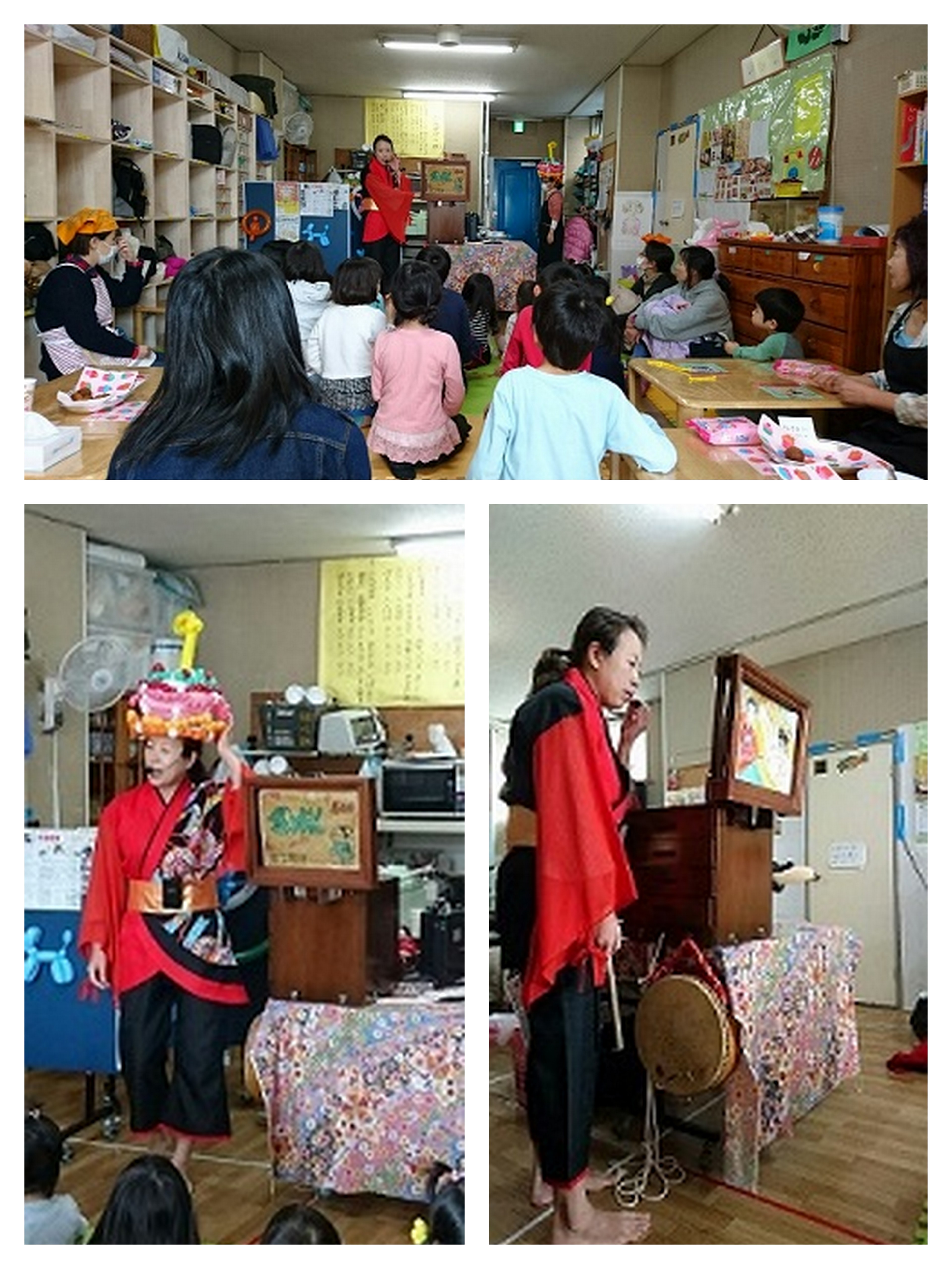 時間の許す限り何話も紙芝居を読んでくれたり、クイズを出してくれたり。