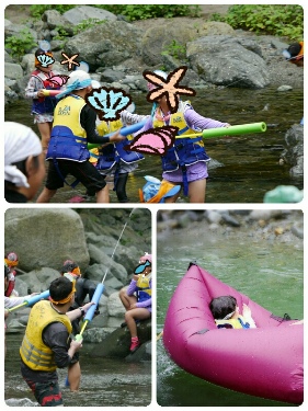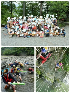 いざ川へ❗お父さんたちの監視&ガードを徹底した中、泳いだり、飛び込んだり、オタマジャクシ探ししたり…、思い思いに川遊びを楽しみます