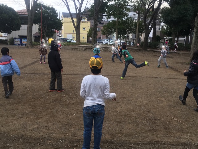 近くで遊んでいた子供達にも声をかけ、混合チームを作り総勢30人〜のドッチボール大会となりました