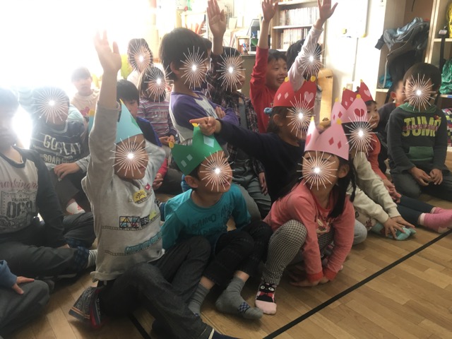 手作りの王冠を子供達からプレゼントし、在室生も、新入生も皆で自己紹介をしました