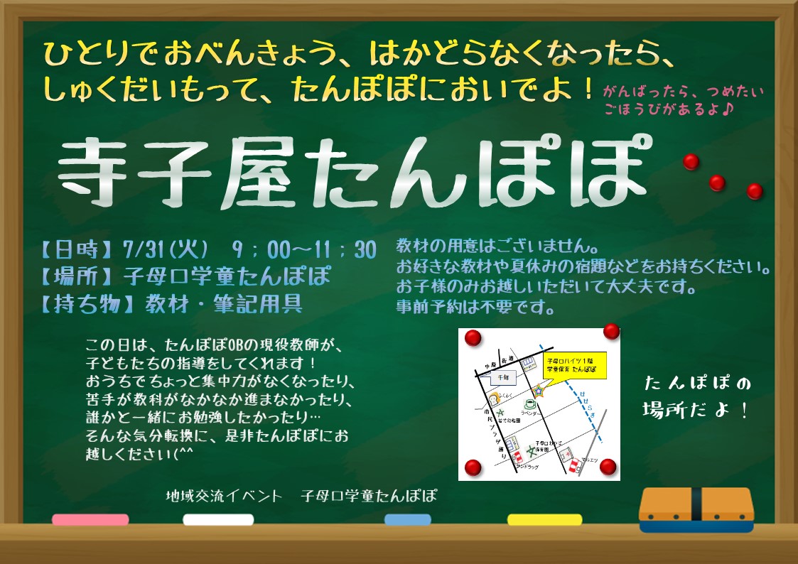 今年もたんぽぽでは、「寺子屋たんぽぽ」開校します♪