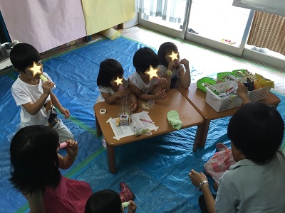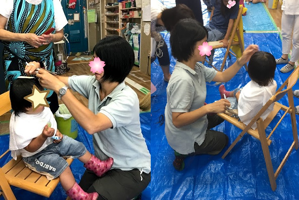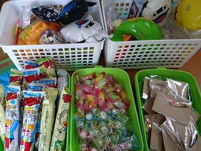 終了した子供たちには、おやつ・おもちゃ・ヘアアクセの