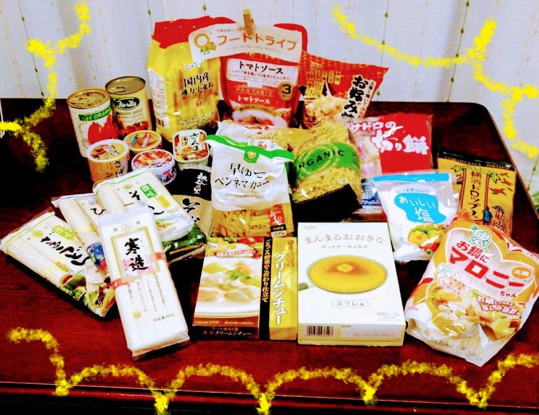 【食品の回収条件】 未開封で賞味期限が1ヶ月以上残っている常温保存可能な食品 【回収対象品】 ・穀類(お米·麺類·小麦粉等) ・保存食品(缶詰·瓶詰等) ・乾物(のり·豆等) ・調味料各種、食用油 ・インスタント食品·レトルト食品 ・お菓子 · 飲料(アルコール飲料は対象外です)