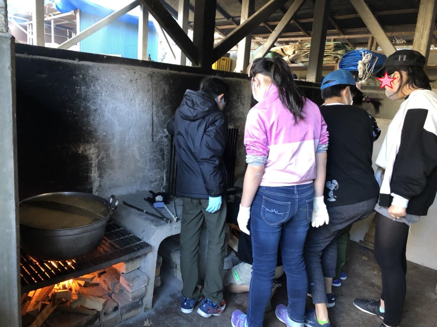 大きなかまどで一度にたくさん作りまーす。