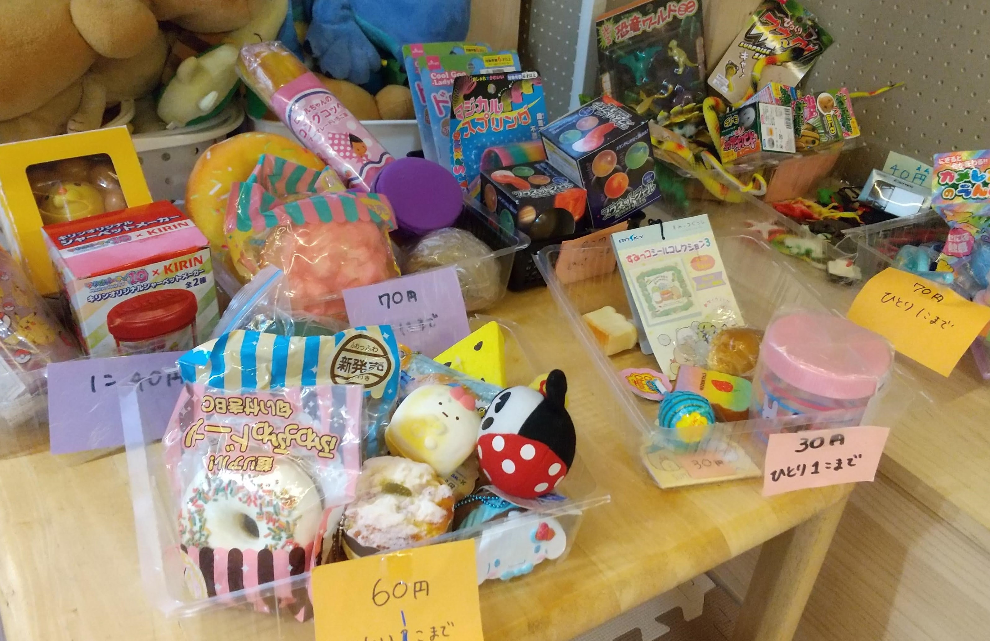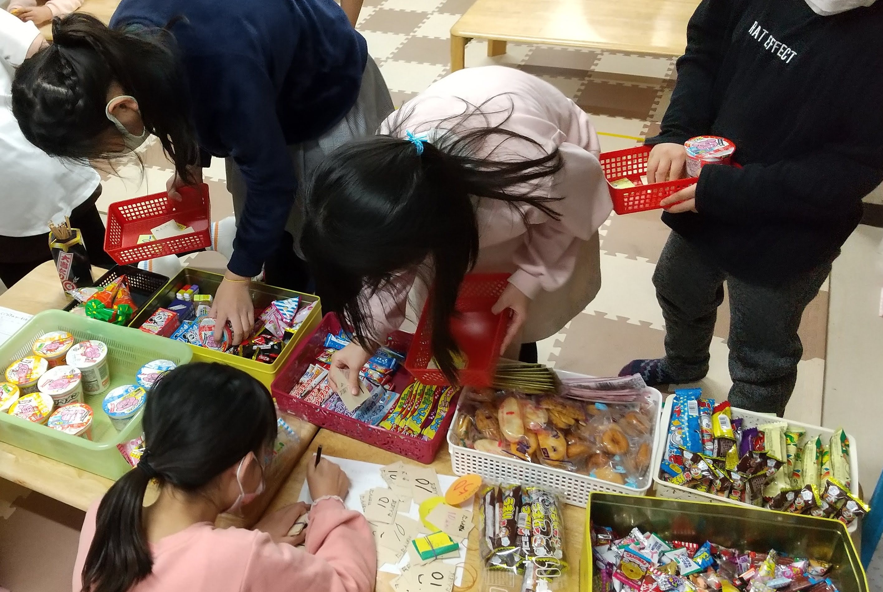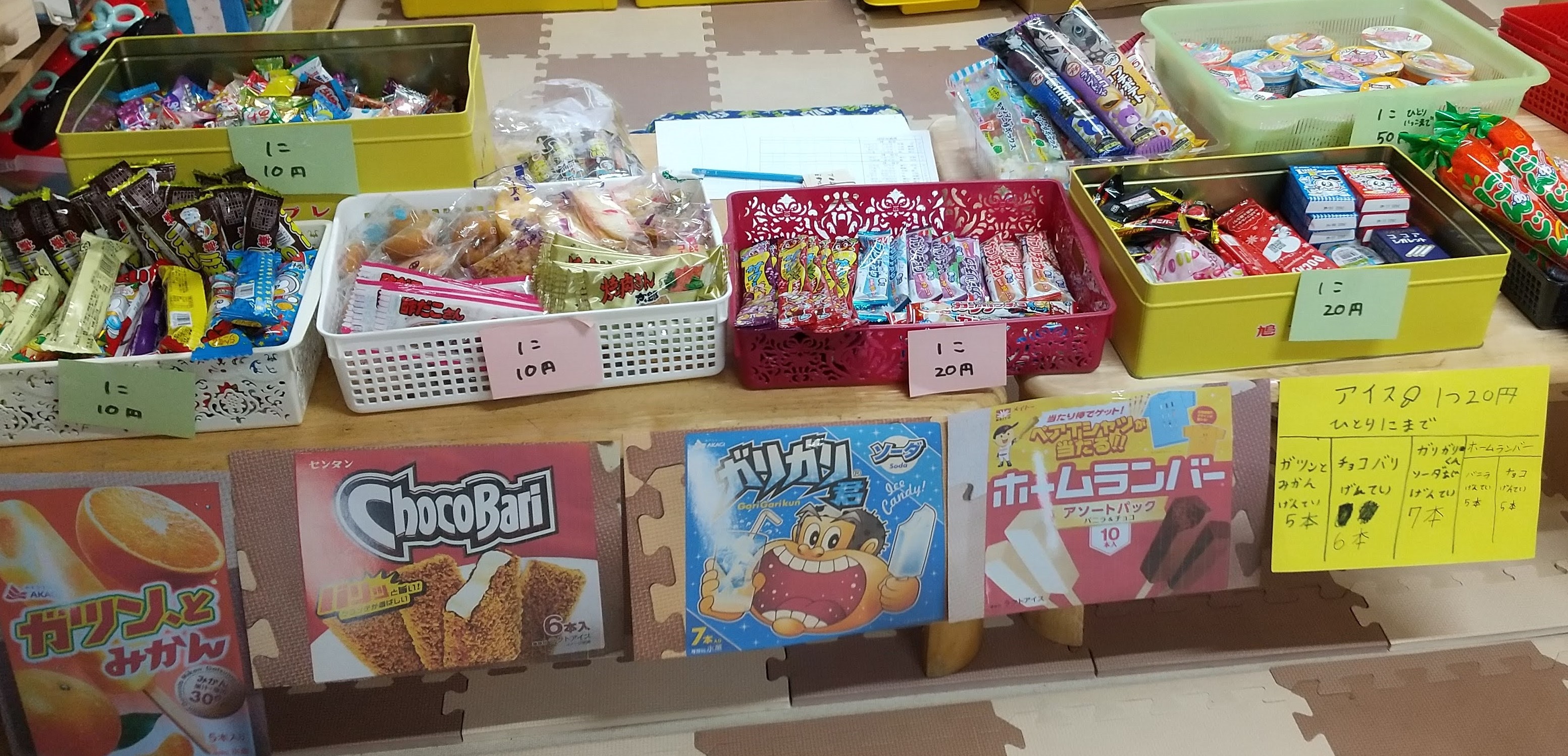 たくさん商品を並べて駄菓子屋さんの準備です。