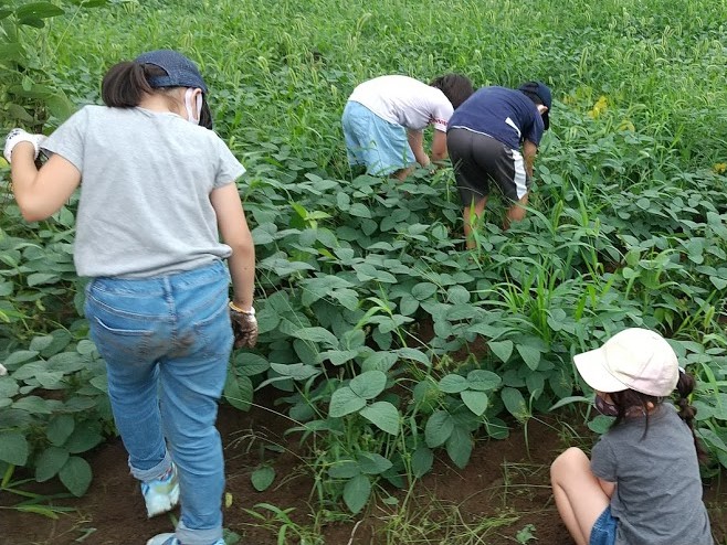前日に収穫した枝豆が入っている子どもたちが多かったです。