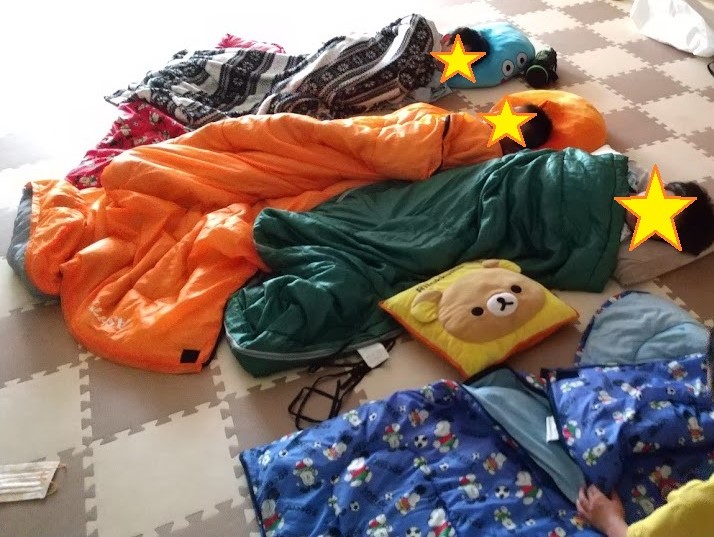 寝袋で眠ります。