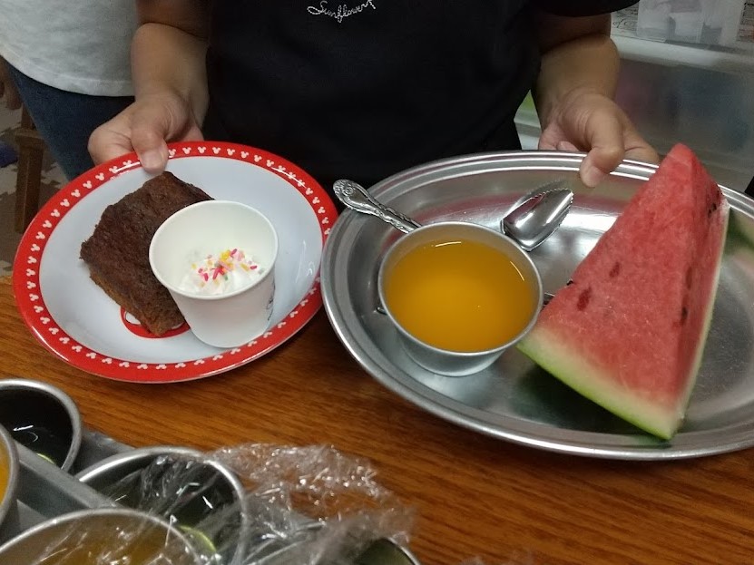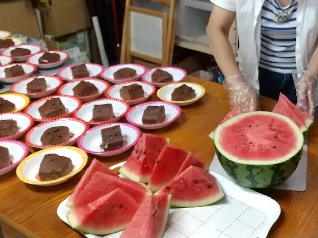 おっきなすいかとケーキで歓迎会でーす。